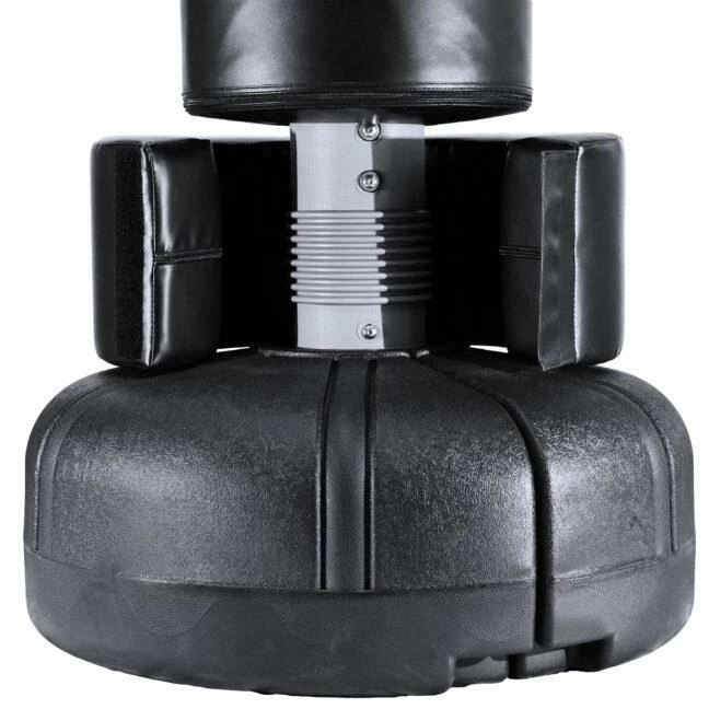 Solid constuction, with a 15cm width inner core stem, and flexible bottom connection. Base is 2 parts, providing great stability when filled with water. With a total height of approx 195cm, a great bag for kicking and punching. A bottom cover gives protection, and extra striking area. Base is approx 81cm x 35.5 height. Foam bag is approx 42cm in width.