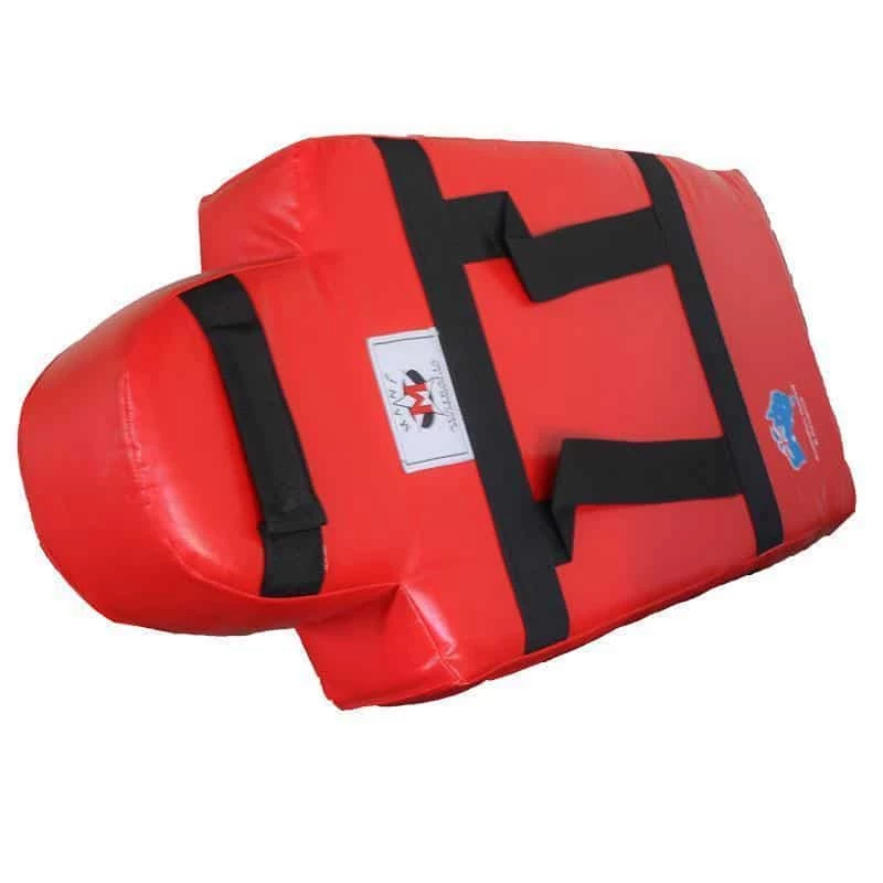 This astonishing high density foam padded shield enveloped in super tough and durable leatherette material for extreme training, is rugged and durable for kicks strikes, MMA training, Muay Thai and combat training demands. The pre-curved design is perfect for body forming fit and function for trainer and is built to take a pounding round. With extra durable nylon straps on back with comfort grip rubber this shield has an additional extension for perfecting your grappling and knee techniques.