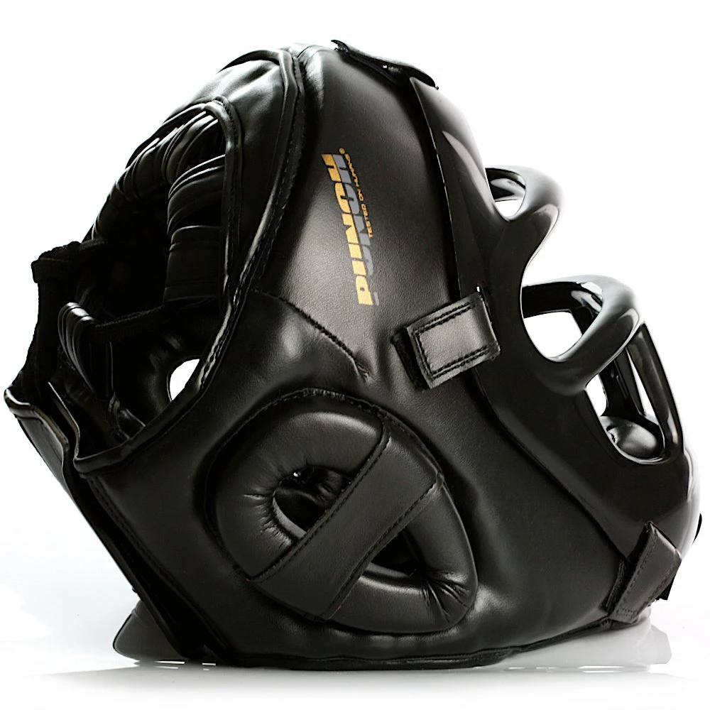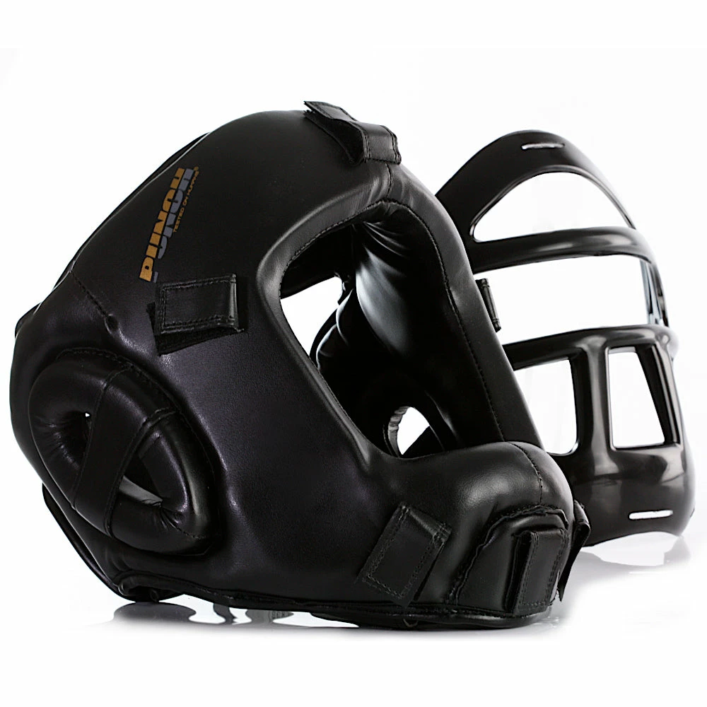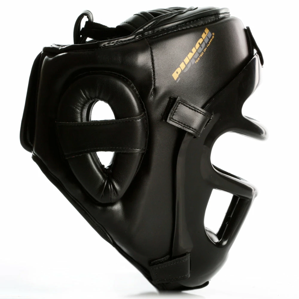 This headgear incorporates a removable cage shield to protect the user from light strikes to the face.