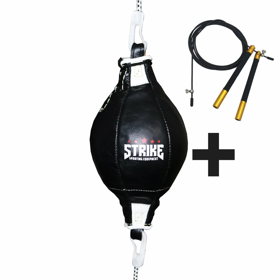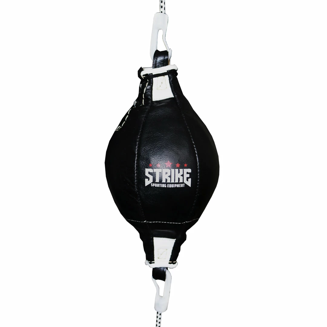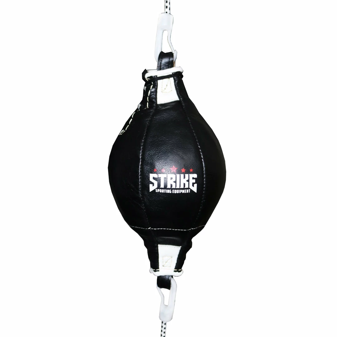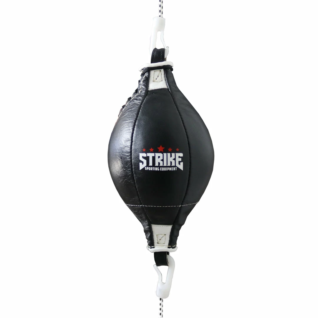 The STRIKE Speedmaster floor to ceiling ball measures at approximately 35cm length and 16cm in diameter. The premium design optimises speed and balance for rapid, accurate rebounds, allowing you to develop your combinations and aerobic capacity. Manufactured using premium cowhide leather, this will ensure the ball last significantly longer than standard synthetic leather balls.Â
