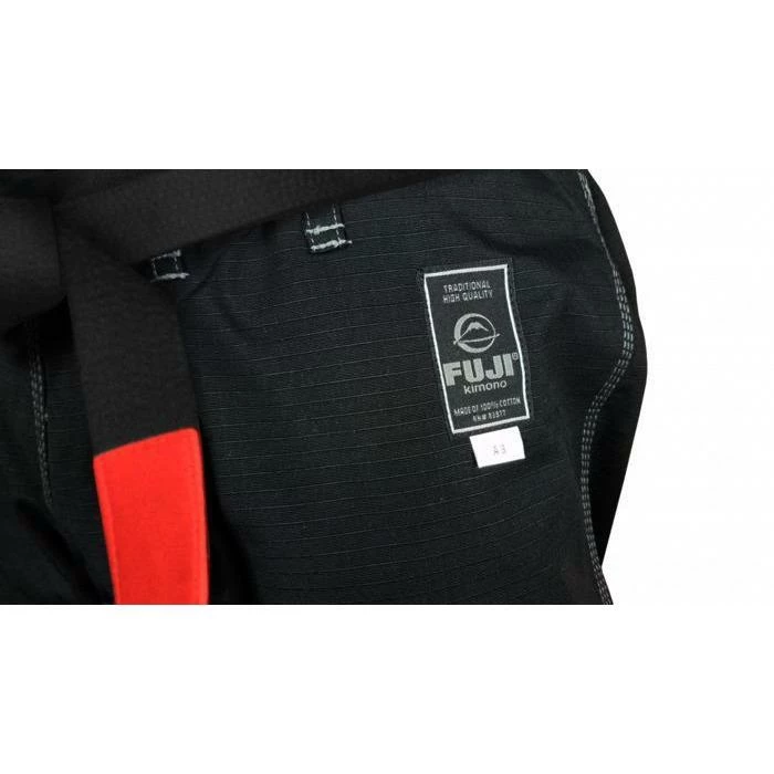 Fuji Suparaito BJJ Gi. Suparaito is the Japanese word and meaning for ‘Super Lite’ and is part of FUJI’s SUMMIT product range which is designed specifically for serious competitors. The Suparaito Jiu-Jitsu Gi features a very light pearl weave jacket with a rip stop collar with extra rows of stitching, and rip stop pants. The Suparaito BJJ Gi is IBJJF approved and comes in White with Navy, Blue with Green and now an all new Stealth Black.