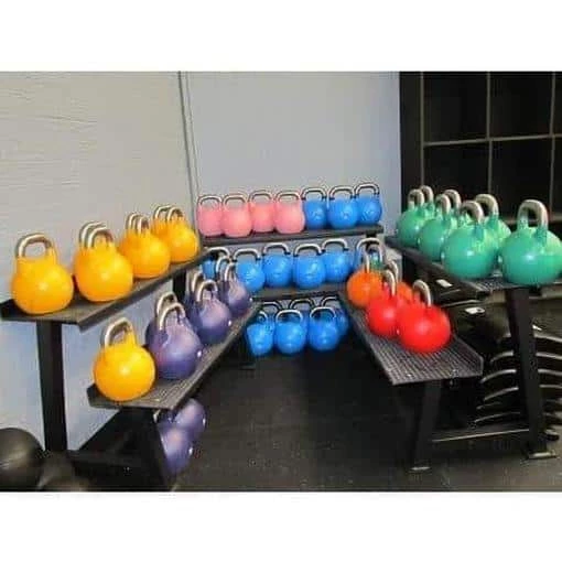 - Can hold up to 8-10 kettlebells per tier (2 x rows per tier)