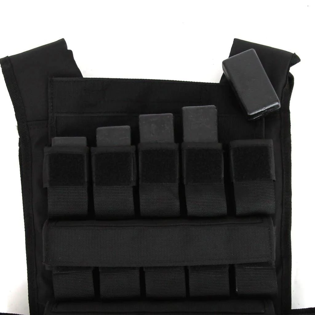 The vest itself features heavy duty nylon construction, padded shoulders for comfort, easy weight adjustment, mobility without restriction.