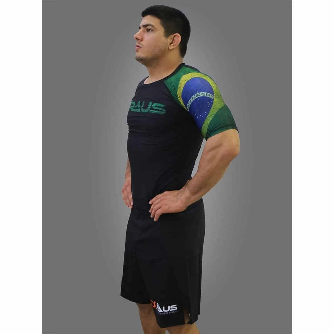 Rashguard Short sleeve Flags have many viable uses, and they are already a staple in no-Gi grappling and the BRAUS Short Sleeve Rash Guard is no exception. Athletes who wear rash guards in MMA/Grappling/BJJ and other mixed martial arts can take advantage of these benefits throughout their training, workouts and fights. It can prevent injury through muscle compression, reduce the spread of bacteria, wicks away moisture for better grips and prevents mat burn.