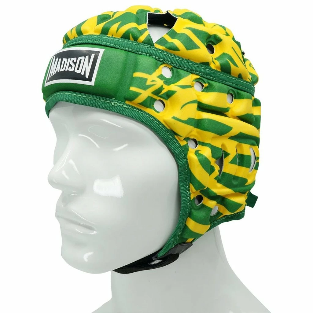 Made with a lightweight compression moulded foam and including 42 ventilation holes, the Air Flo headguard provides unsurpassed comfort during the heat of action.  Also has a  fully adjustable back and velcro chin strap for optimal fit. Â