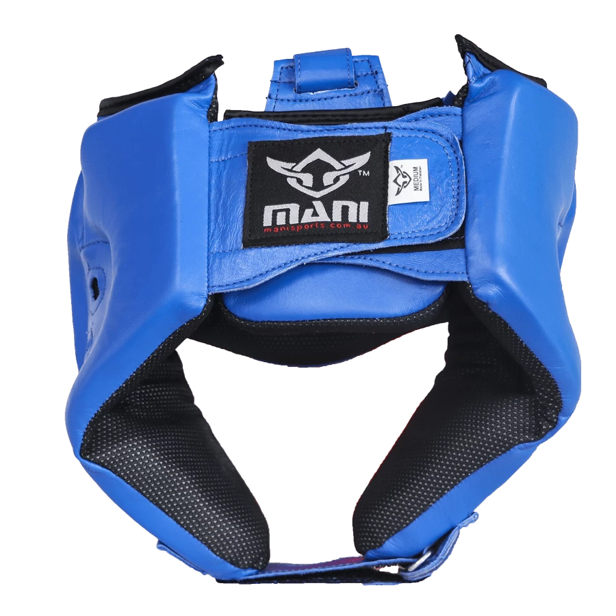 The only headgear of it kind available in the Mani product range, has a comprehensive coverage to help prevent injuries with jaw and ears. This head gear has multilayered high-density foam padding for greater protection and shock absorption. Equipped with adjustable hook and loop on the top and quick and secure Hook and Loop closure at the back it is truly a top of the range head gear constructed of high quality leather.