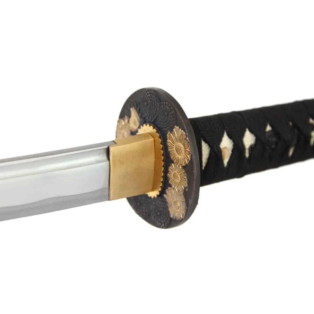 With high quality carbon steel, the Carbon Chrysanthemum Katana has a razor sharp blade suitable for Tameshigiri. Hamon, Blood groove, Full Tang and all the features you would expect in a high quality sword.
