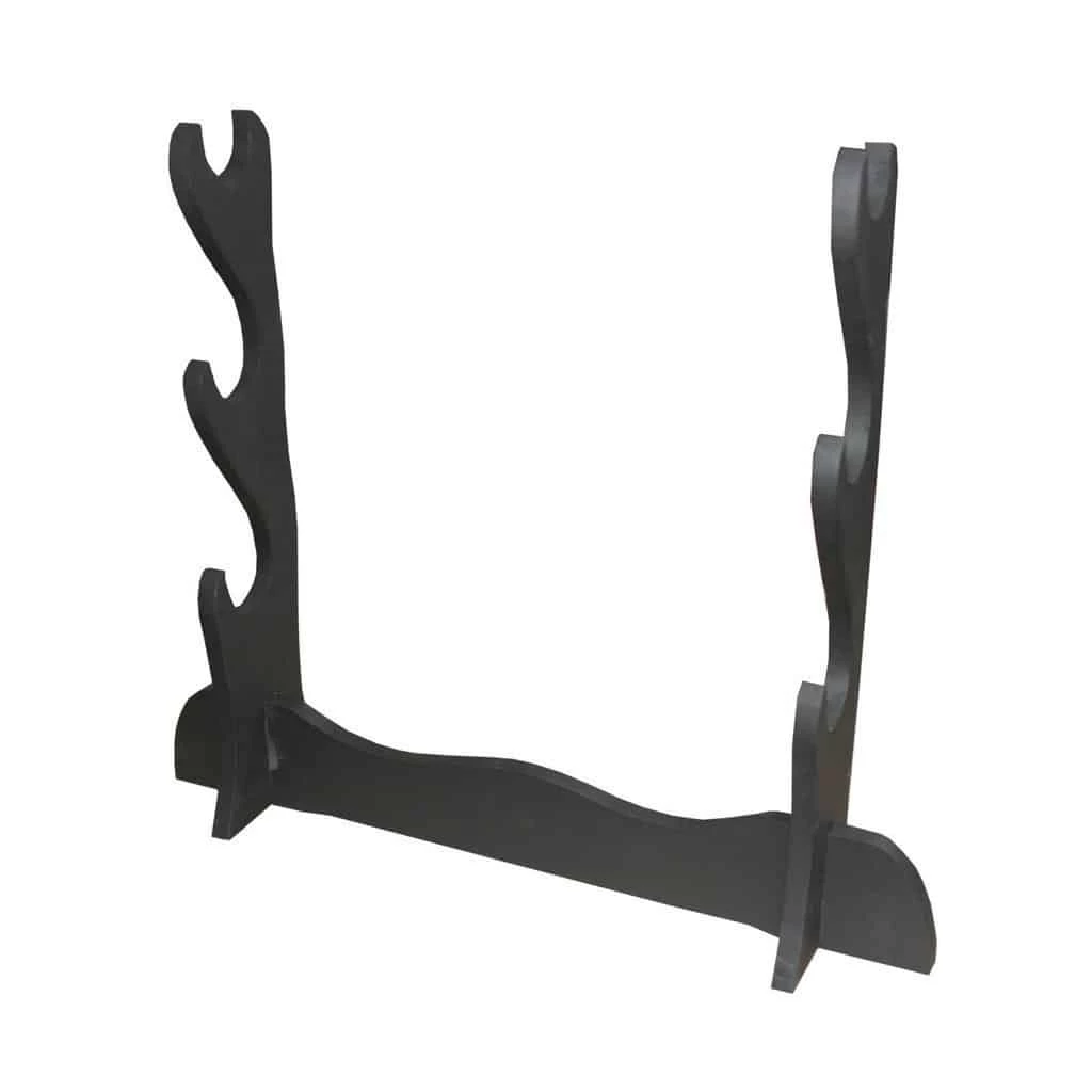 Made from high quality materials this rack allows the elegant display of three swords. With a freestanding design, this rack allows a convenient and stylish display of your prized sword collection.