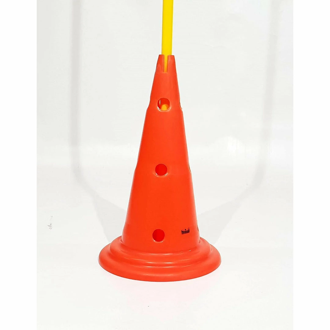 MORGAN 50CM MULTI USE MARKER HAT The Morgan Multi-Use Maker is a 50cm in height and 30cm in diameter marker that can be seen from any direction by your clients while training them to their full potential. The great thing about this multi-use marker is that it has 3 different position holes that run through the marker which turns it into an adjustable hurdle set to create your own ninja obstacle course. The multi-use marker also has an additional hole on the top. Purchase Morgan multi-use marker and set up your own agility course in seconds rather than wasting time pushing spiky agility poles into the ground. 50cm in height 3 different height for agility poles Bright orange in colour Heavy-duty plastic ensures the witches hats cant blow away