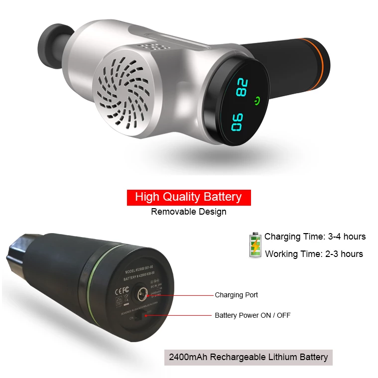 MORGAN COMMERCIAL MASSAGE GUN The Morgan Massage Gun has a slick ergonomic design that can be comfortably held at a variety of angles allowing for both a therapist to press into otherwise awkward spots or for athletes to use the massage gun on themselves. The ergonomic silicone handles grips well even without the use of a mould so the gun can be rotated freely. There are six (6) different speeds that allow for intensity to be customised to you or your patient’s ideal level. A common complaint among inferior models is that the excessive noise generated is distracting or annoying. With the Morgan Massage Gun, a quiet conversation can be comfortably heard even at the highest intensity; the noise is comparable to clippers when having a haircut. The Massage Gun is the pinnacle in its emerging field of therapeutic vibrating technology. Quieter, more comfortable and with more range than its competitors, the Massage Gun is recommended for health professionals and for elite athletes who will not accept anything less than the best. Upgrade LCD touch screen for smarter and easier operation Features: Including 4 different massage head, meeting various demand. The maximum speed can reach 4200r/min, which is higher than other similar products Effectively reduce muscle stiffness and sore pain, increasing blood circulation 1-6 speed adjustment, you can choose that you fit 10 minutes intelligent timing guarantees a long life of the machine Super large capacity lithium battery, 2-3 hours work time With over-protection, overheat protection and other safety protection devices, safe to use Suitable for recovery after sports fatigue, rehabilitation after a sports injury, pain relief during the convalescence period of surgery, as well as reducing inflammatory reaction Specifications: Power Charger – Rated input: 100~240V 50/70Hz 1A Battery – Rated Voltage: 24V DC – Type: Li-ion – Capacity: 2400mAh – Maximum speed: 4200r/min Power output: 20W Noise output: 40db +/- 5% Weight: 1.09kg Dimension: 25 x 23cm Package Included: 1 x Massage Gun, 4 x Massage Tips, 1 x Li-ion Battery, 1 x Power Charger, 1 x Product Manual, 1 x Box, 1 x direct Australian power adaptor