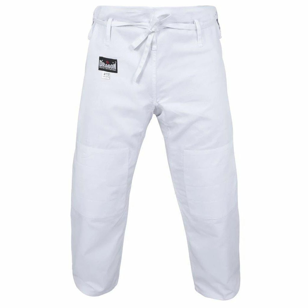 The Dragon White 1.5 Weave Judo Uniform is the staple of just about any judo class you’ll find. Our Judo gi will provide any martial artist with a solidly designed uniform with the everyday judo student in mind. Our gi offers essentials such as reinforced stitching and a 3-piece pant gusset, all of which help stand up to hours of rolling on the mat. The sturdy 1.5 weave design offers the perfect blend of comfort and durability, allowing for easy movement without succumbing mat rash.