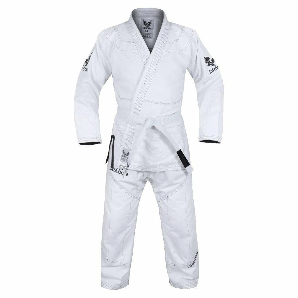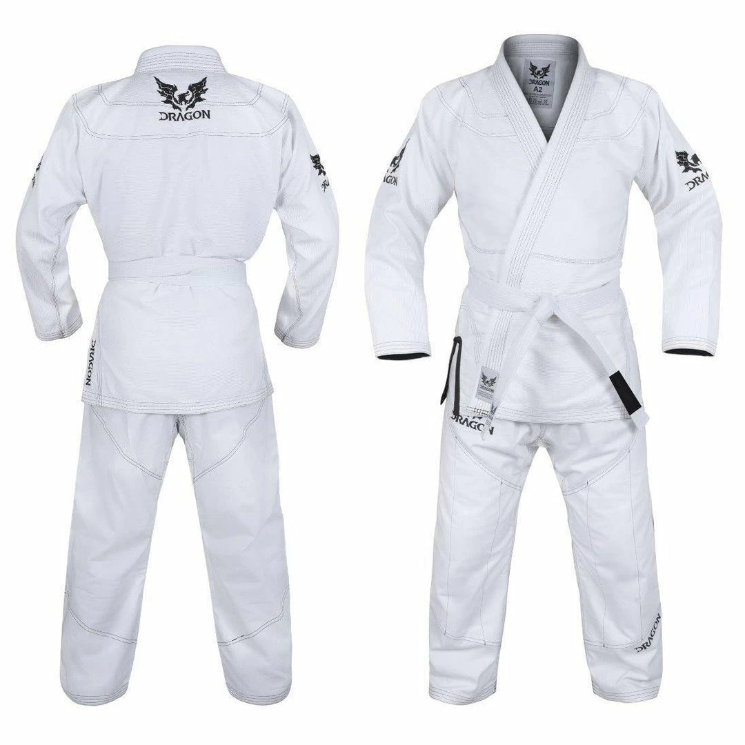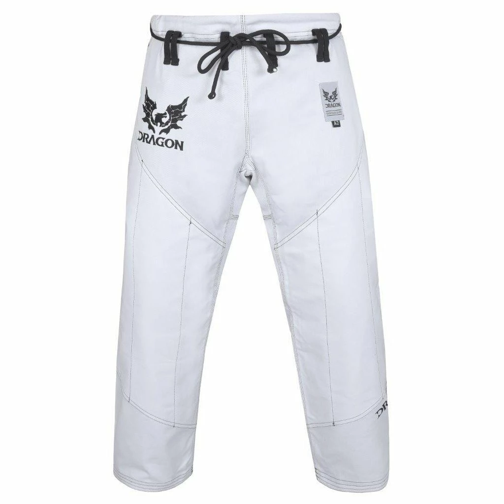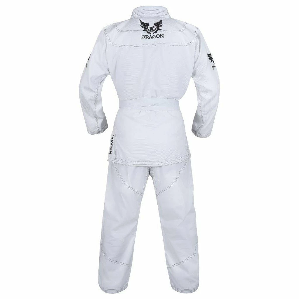The V2 450gsm pearl weave Dragon BJJ uniform is an incredibly well priced, superior quality Jiu Jitsu gi, designed in conjunction with some of Australia’s leading practitioners. Our uniform has a tailored fit with a wider back to allow you to roll with no restrictions. The V2 BJJ uniforms are a clean crisp gi, minimal branding logos to allow you to put your club and sponsor patches anywhere you want. Pro BJJ white belt with black tip + a breathable gi storage bag are also included.