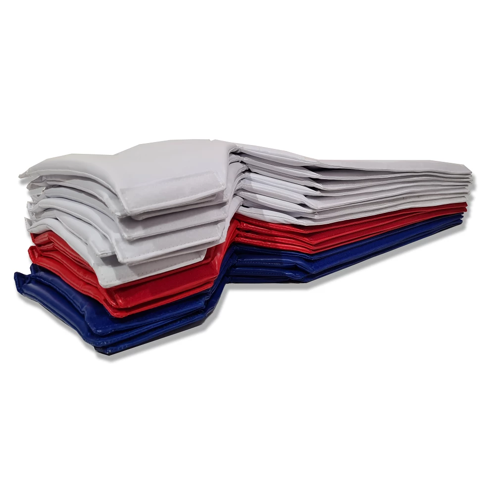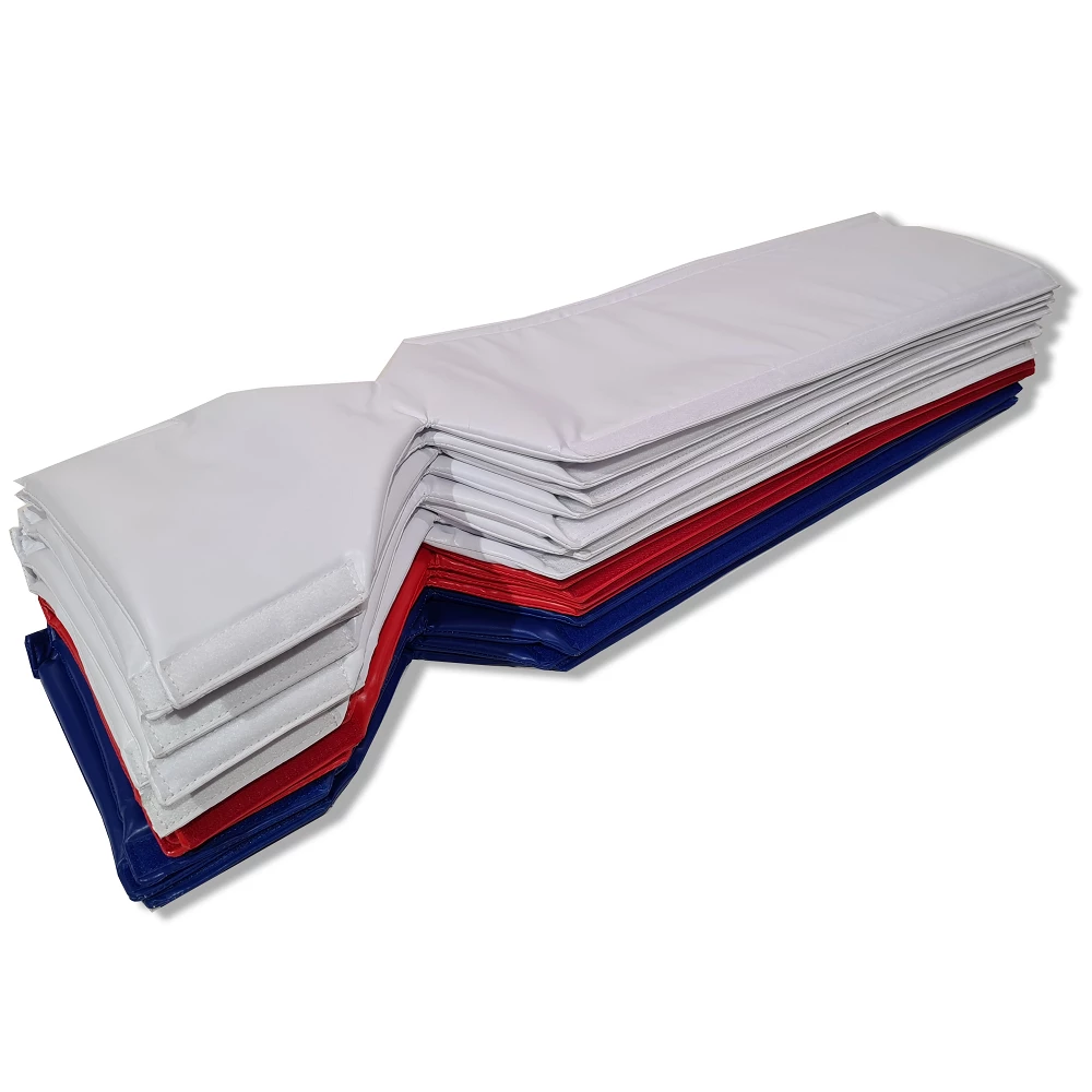MORGAN ELITE TURNBUCKLE COVERS (16PCS SET) The Morgan Elite Boxing Turnbuckle covers are protective additions for boxing rings. The turnbuckle covers perfectly protects metal turnbuckles on all boxing rings and offers a high level of user safety. The pack consists of 16 upholstered and padded covers that are easy to install to use immediately. They are durable with velcro tabs that make them adjustable while maintaining their secure hold and covering the turnbuckle completely. Specifications Foam inserted inner Upholstered vinyl for a professional finish Industrial quality velcro tabs 4 x red, 4 x blue, 8 x white covers