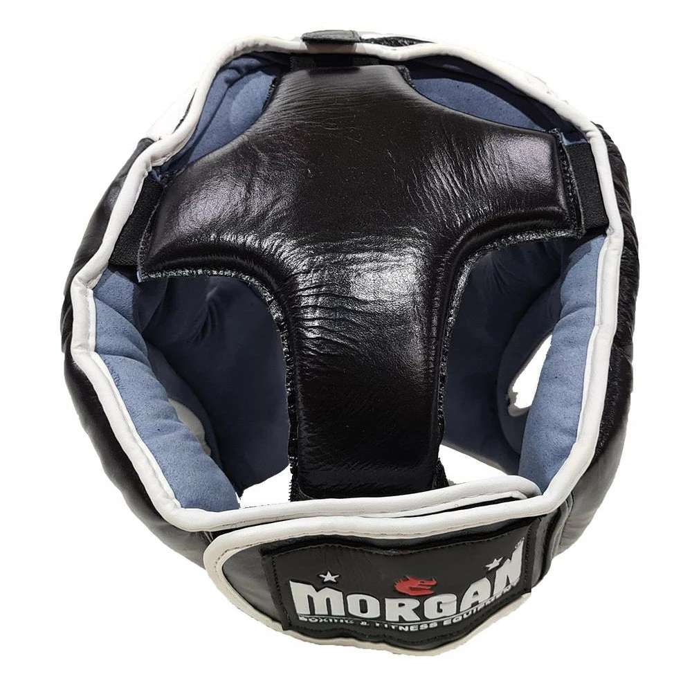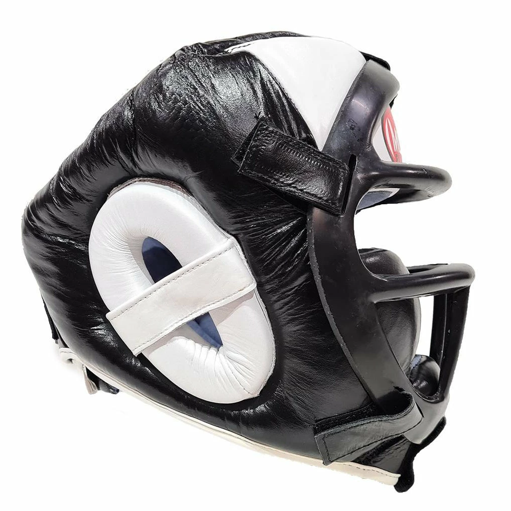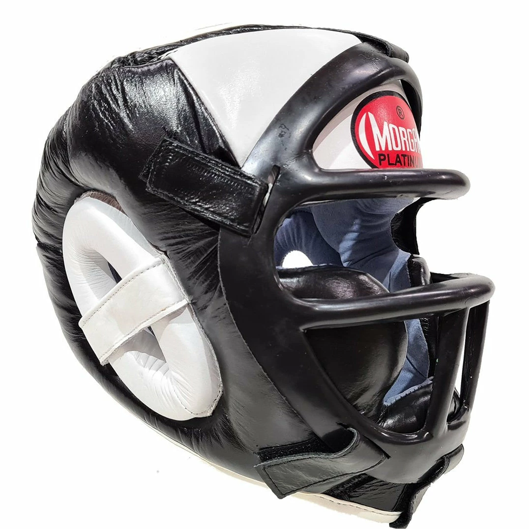 The Morgan removable grill head guard is made using the highest quality cowhide leather with a shatterproof ABX Plastisol facemask that protects the face from punches and strikes. The front facemask removes quickly and easily with six convenient hook-and-loop attachments so it can be used with and without the shield. Using multi-layered shock absorbing inner foams, cheek pads, padded panels over the top and rear of the head with added leather panels located over the ears offer incredible results.