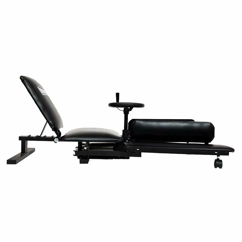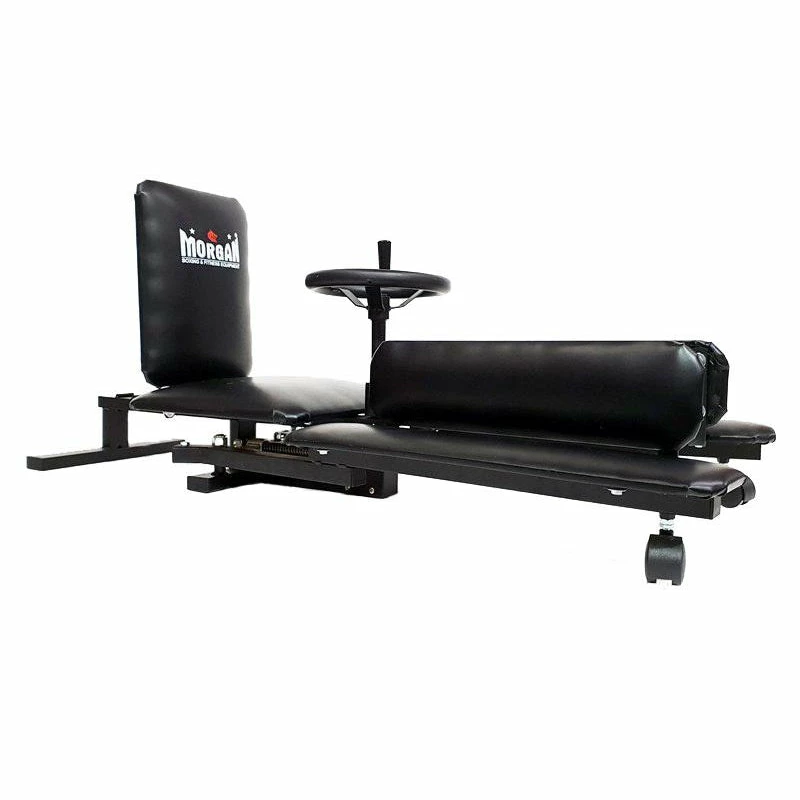 MORGAN LEG STRETCHING MACHINE The Morgan Leg Stretching machine provides an incredible benefit to your health and performance. Stretching your legs not only helps you become more flexible and even fight the pain that comes from muscle stiffness, but also enhances your overall range of motion so you can give power and precision to your kicks, punches, and backflips. The Morgan leg stretching machine helps you stretch out your hamstrings faster and enables you to easily measure incremental progress by how many turns of the tightening wheel you can make before your legs say, “whoa, stop right there.” Our Leg Stretching Machine has soft cushions that run almost the entire length of your legs to help spread the stretching force and an adjustable backrest so that your time spent stretching won’t feel too awkward or uncomfortable. You can also easily take the turn-wheel off and set the padded backrest back to store your high-quality stretching machine in storage cupboards located at your dojo. Constructed with a steel gear system for heavy usage Folded padded backrest for easy storage Removable turn-wheel for easy storage Easy to move and adjust Every board features vinyl covered foam for maximum comfort