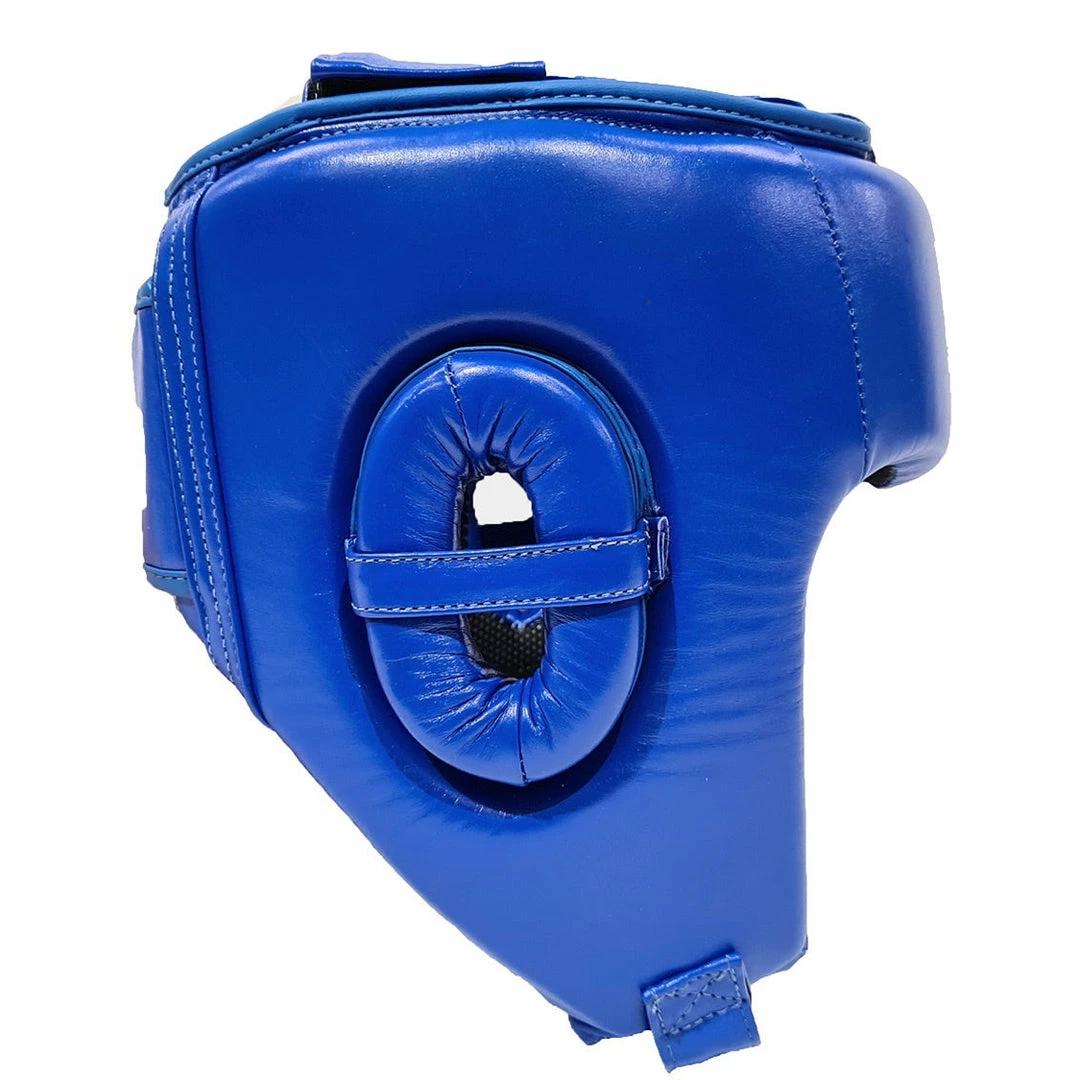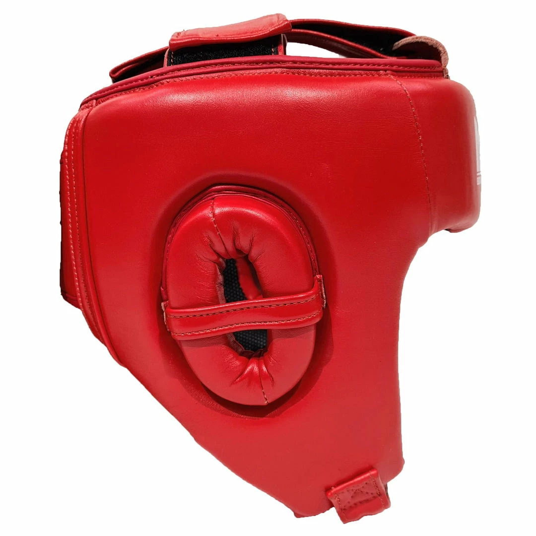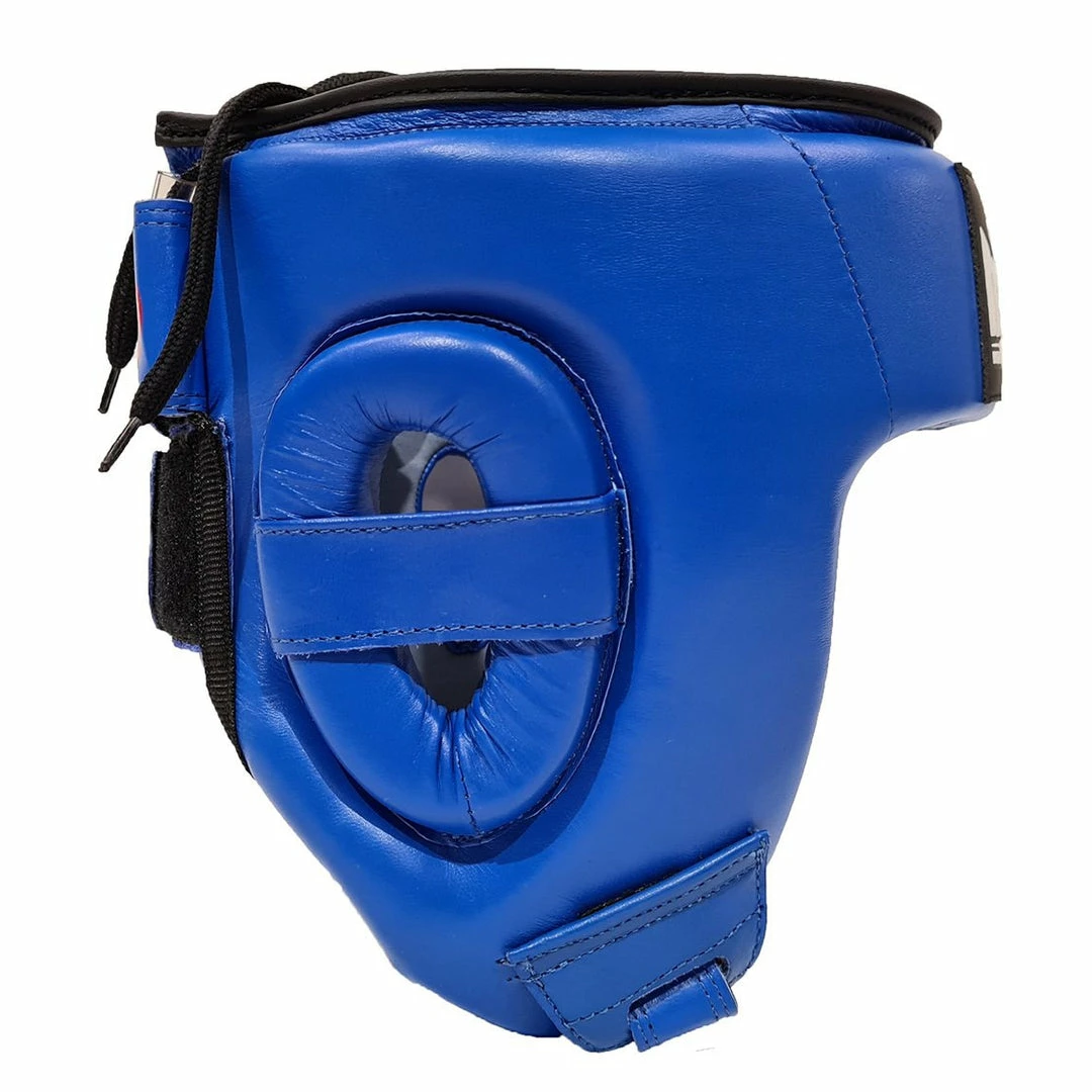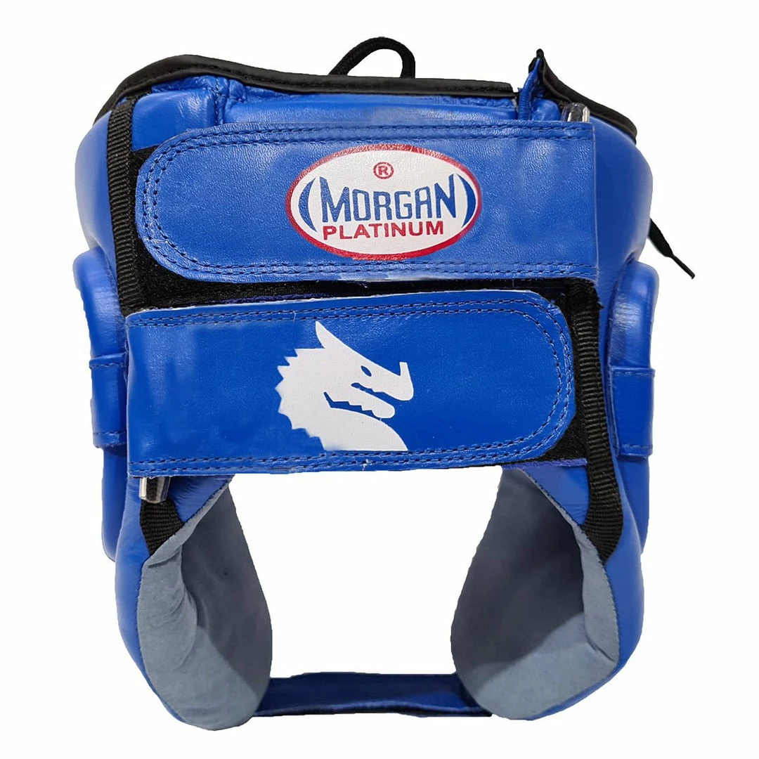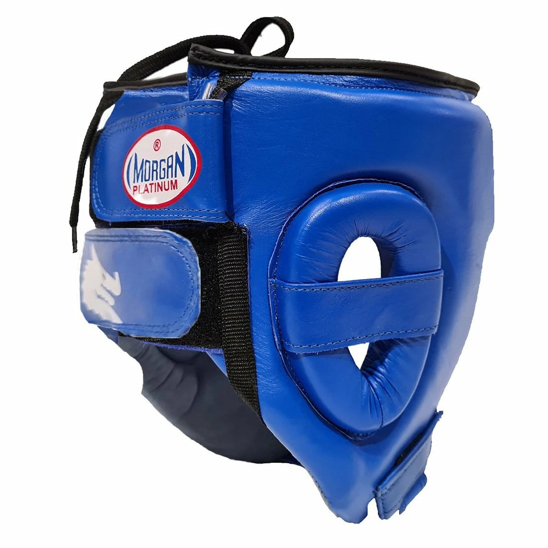The Morgan Open-Face Platinum Head Guards are manufactured with high-quality cowhide leather for maximum durability. Inside is a synthetic leather lining that provides superior comfort to the wearer. It features a form-fitting top, rear back, and a multi-directional chin velcro-adjustable closure for a custom fit. Lightweight Super-Flex Air Cushion padding ensures maximum protection and shock-absorption. This headgear is manufactured to meet the AIBA specifications regarding overall head guard weight and design makes this a great cost-effective head guard for sparring.