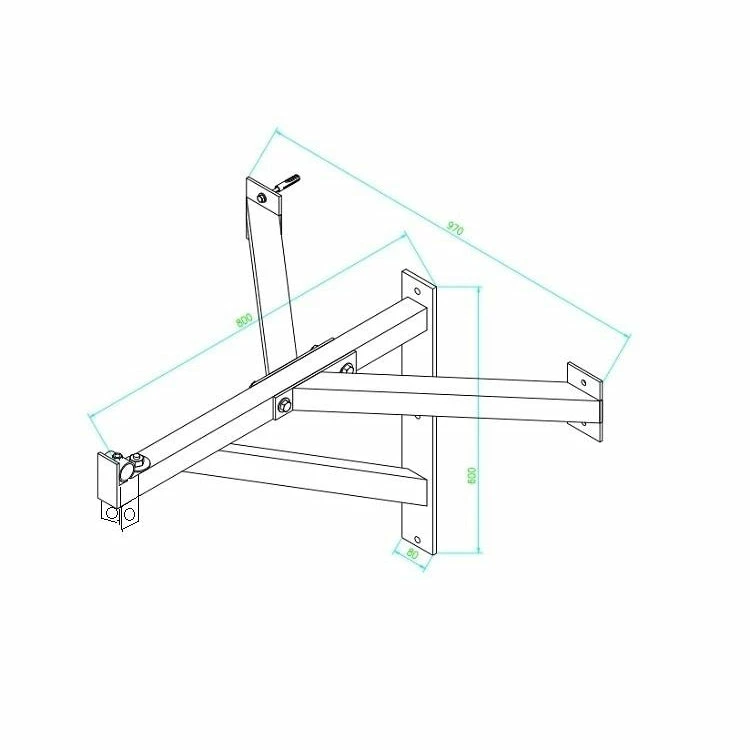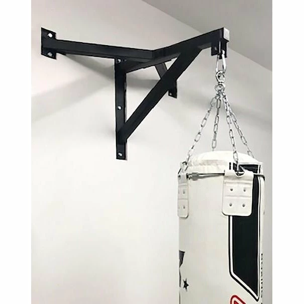 The Morgan Platinum punch bag hanger is manufactured using 5mm thick, powder-coated, re-enforced steel, with additional strut arms. This maximises the distribution of the punching bags weight by spreading the weight-bearing as far away from the main hanger arm as possible. The unique feature works as a way to distribute the weight of a punching bag, putting less stress on the frame, which over time will increase the longevity of the hanger. Its easy assembly and design that is able to hold punch bags up to 250kg make this the perfect punch bag hanger to hold the heaviest of punch bags. The punch bag will sit 80cm off the wall, allowing for easy in and out movement. Using the same quality steel as our CrossFit rigs will make this the right product for a permanent bracket fixture.