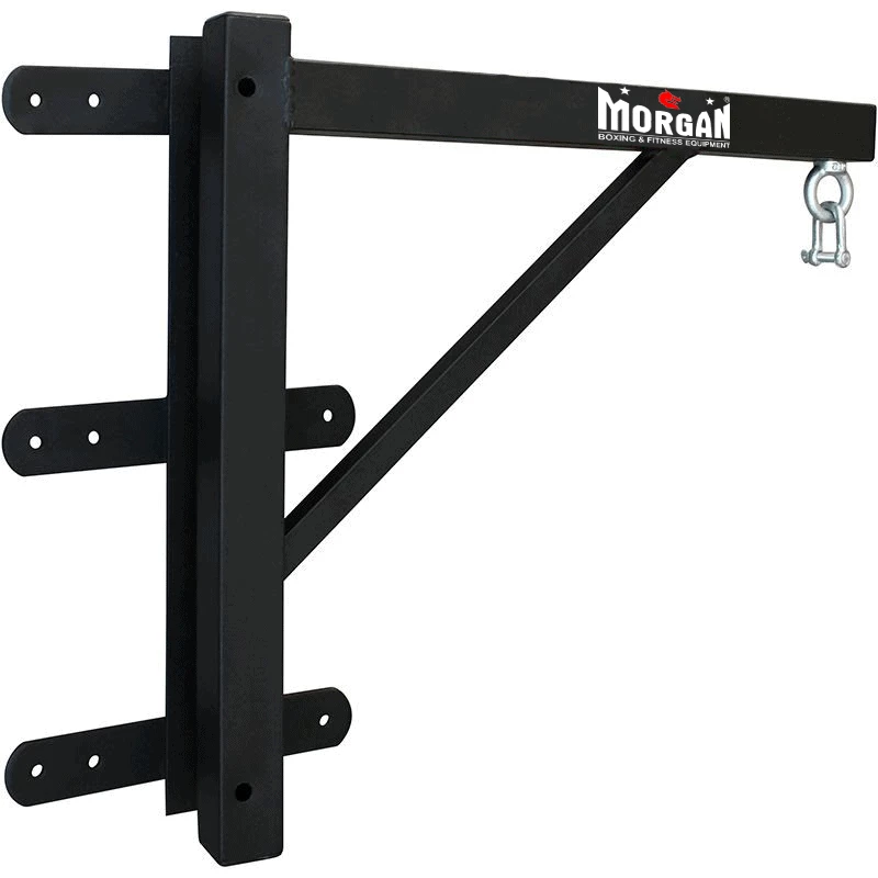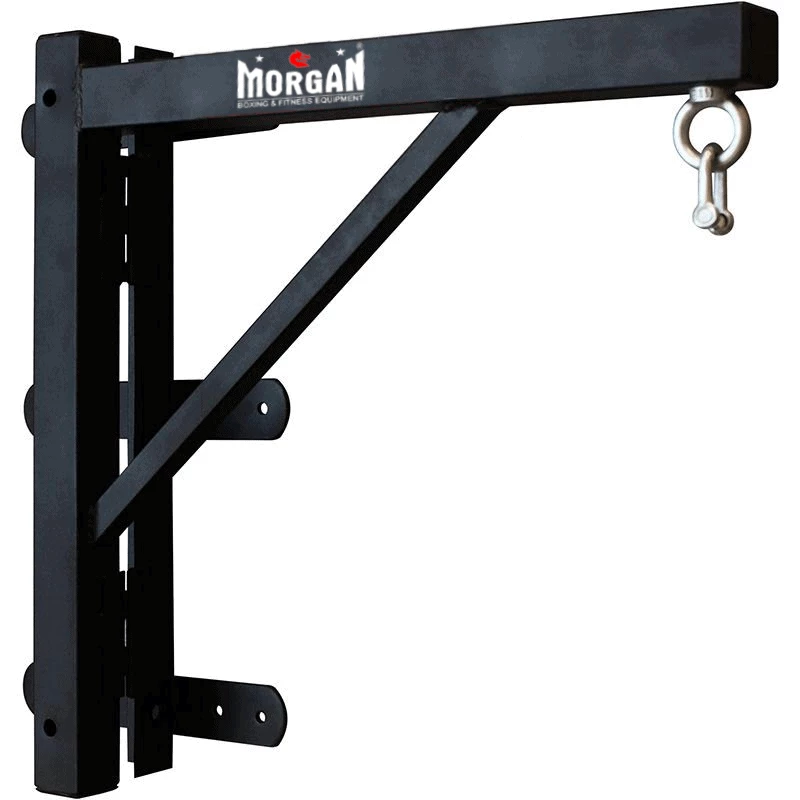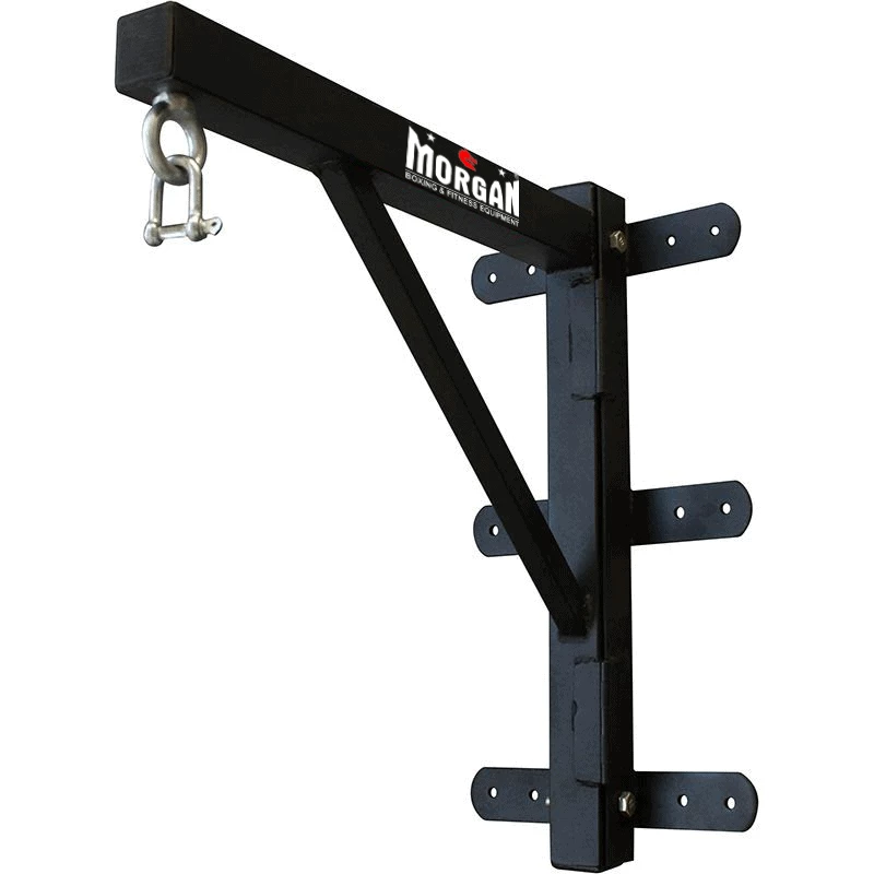The Morgan deluxe punch bag hanger is a retractable heavy bag wall mount, constructed with a convenient swing-away designed to save space in the gym. A commercial use design that doesn’t compromise on strength, this reinforced high-grade steel built bracket is made to hold the heaviest bags and withstand the toughest training sessions for both boxing and commercial fitness gyms. For added wear and tear defiance, it comes with powder coated brackets, an anti-rust treatment for all-weather use, and a 6 point bolt system to keep it securely fixed in place. This wall mount heavy bag hanger is easy to assemble and comes with D shackle and wall fixings