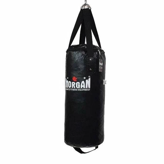 The Morgan small Nugget punch bag is a great punch bag that is designed to be used in smaller spaces. Measuring 75cm in height and 35cm in width and weighing approx. 22kg, this punch bag is great for cardio fitness training when only punching is going to be done. Made from 850D ripstop vinyl, 4 nylon hanging straps, secured with strong D rings to hold the bags weight and a stabilising strap at the bottom of the bag makes these a great home and studio bag. Filled with a premium blend of Australian made fleece and cotton, it provides a dense and safe striking target.