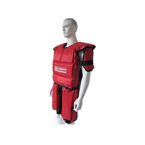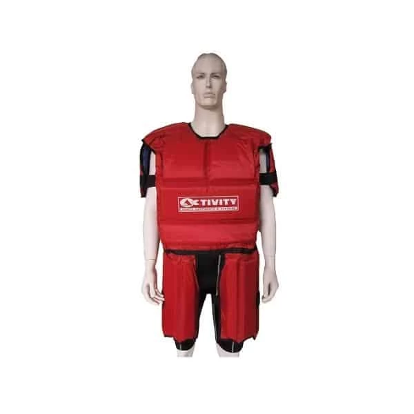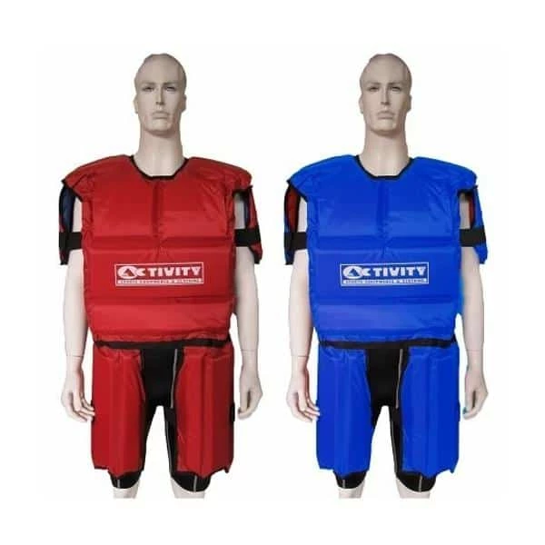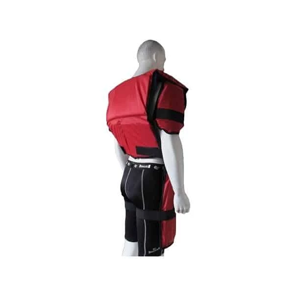 - Protective football and combat sports training body armour with shock absorbing EVA foam lining