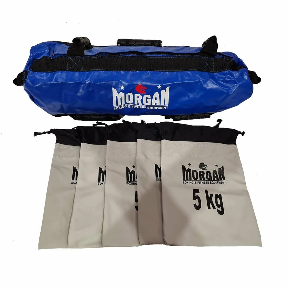 Looking for a training sandbag designed to produce functional strength, then the Morgan 25kg weighted sandbags are just what you need! It features multiple handles all around the shell for numerous twisting, pressing and pushing exercises. Your level of fitness doesn’t matter as you can pick between using 1, 2, 3, 4 or 5 of the 5kg sand pockets that are supplied with the sandbag. Simply, adjust the number of bags inside and get a weight that is right for your workout needs. Morgan sandbag is built for durability unlike some weighted sandbags that rip the moment you attempt a clean and jerk. We use ultra-tough rip-stop vinyl to construct the outer shell and reinforce this with strong nylon stitching, so you can heave all day if you want and the bags will still remain in good condition. We have also solved the sand leakage that plagues most workout bags by using filler bags with double-sealed inner liners and additional strong hook and loop so you won’t be cleaning up sand every time you decide to break a sweat. Here’s what makes these training sandbag the choice of pros: