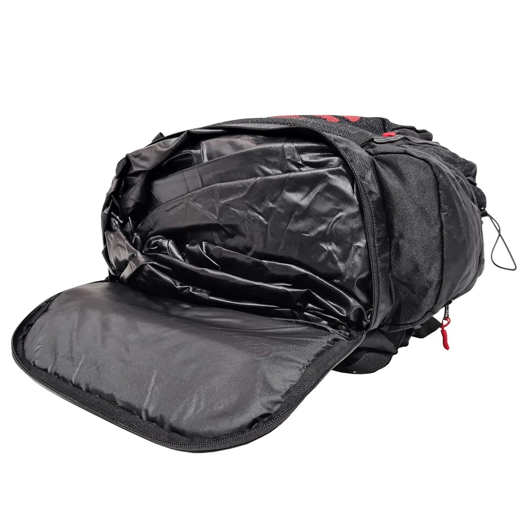 MORGAN ULTIMATE FIGHTERS BACKPACK Grab your gear and get to training with this Morgan Ultimate Fighters Backpack. Designed to store all of your combat sport and gym training essentials like clothing and fight gear, this backpack features an oversized main storage compartment with a big opening, internal pockets and antimicrobial lining, a separated wet compartment with ventilation to air out your post-workout wear, a padded laptop sleeve to keep your computer safe, plus padded and adjustable shoulder straps for carrying comfort. For organised storage, the backpack has multiple mesh and zippered pockets to stash your gear, along with an additional mesh bag with drawstring closure to air out other items after training or competition. SPECIFICATIONS 100% polyester Dimensions: 21 cm x 35 cm x 57 cm; Volume: 51.5 L Shoe and a wet compartment with mesh inserts for ventilation External laptop compartment; Front zip pocket Side zip pockets; Small front zip pocket