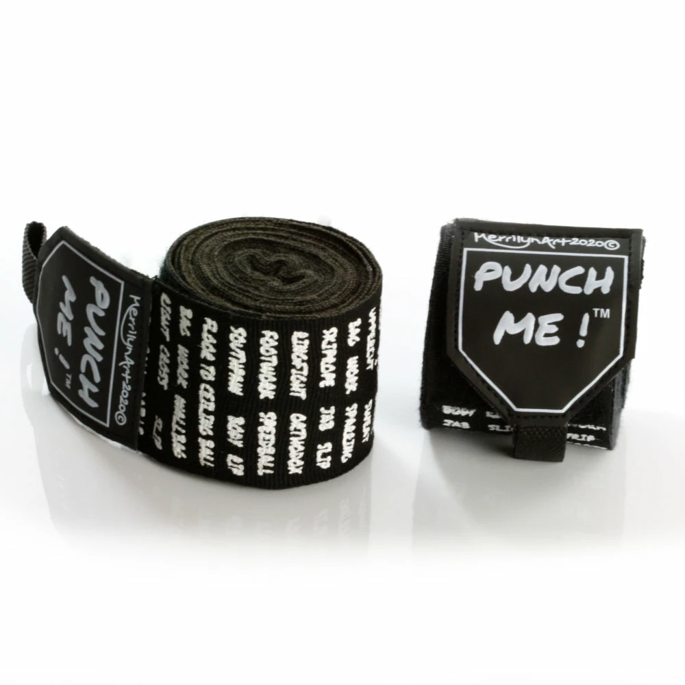 Be the first to review “Punch Me! Word Art Stretch Boxing Hand Wraps PAIR 4M Limited Edition – Black BOXING / MUAY THAI / MMA” Cancel reply