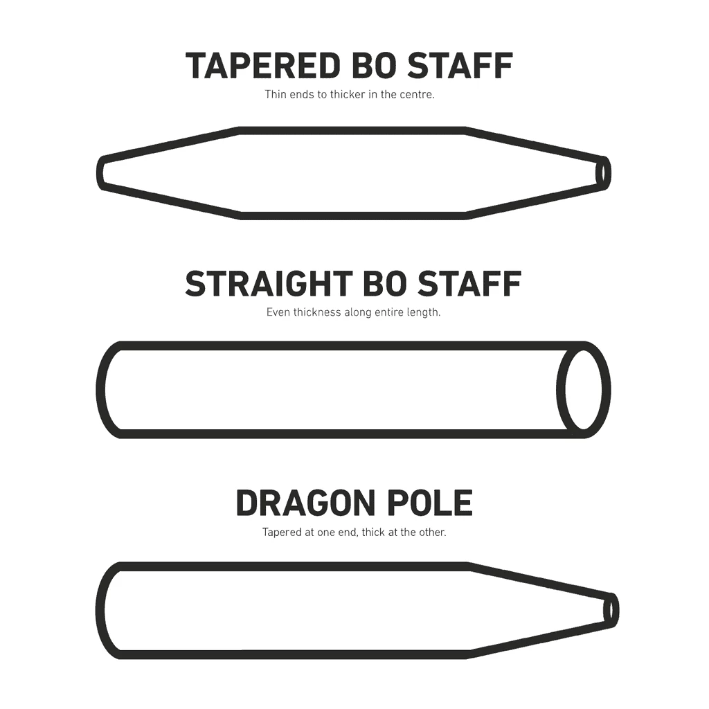 You should choose a staff that is close to your own height, unless you are training a specific style. The thinner or lighter a staff, the easier it will be to handle, and the faster it will maneuver through air. Generally, tapered staffs are used for demos. Straight staffs are used for training, as they are more durable during contact training.