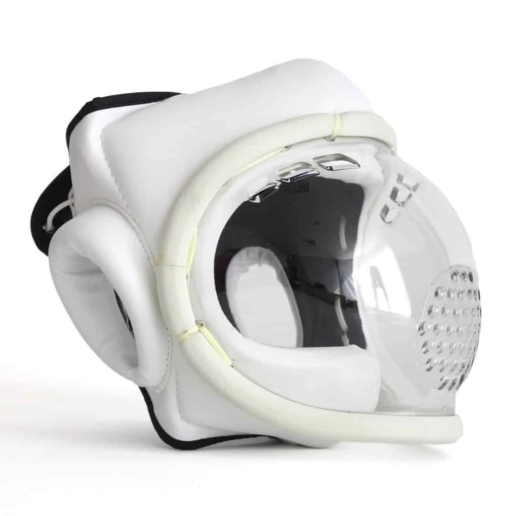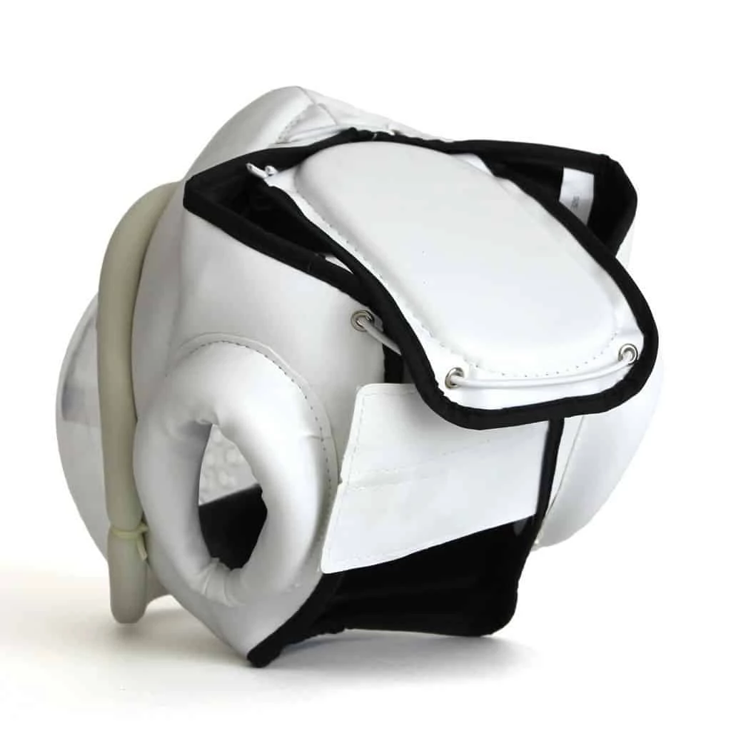 The SMAI PU Prospec Head Guard is a complete head protection option, designed to protect your head during light martial arts sparring. This head guard is made of a high density EVA foam outer, top of the head is covered. Featuring an injection moulded dome that covers the face. The face shield is vented to reduce fogging of the visor and is also offset from the chin to allow air flow on the underside of the mask. The product is not meant to be used in full contact sports or weapons trainings. Commonly used in Koshiki Karate sparring events.