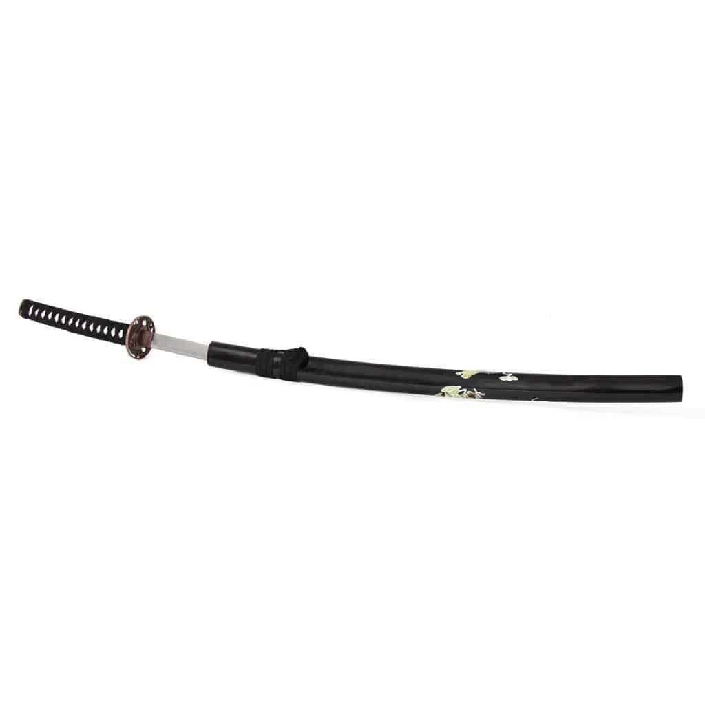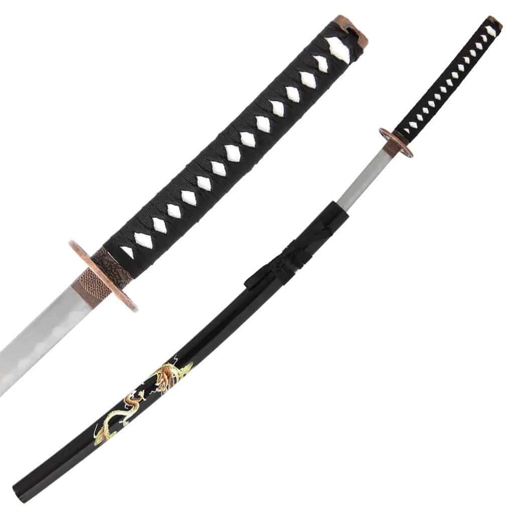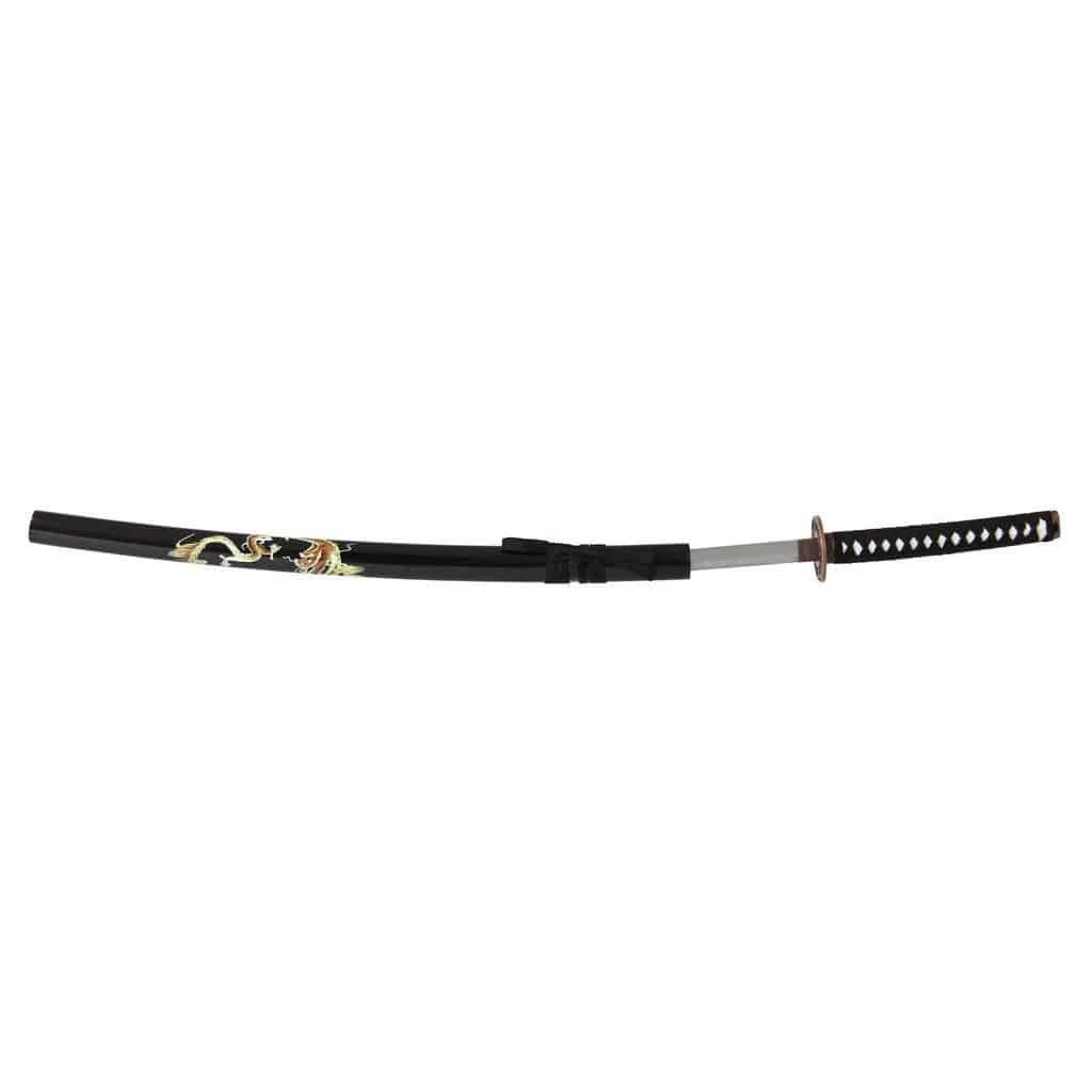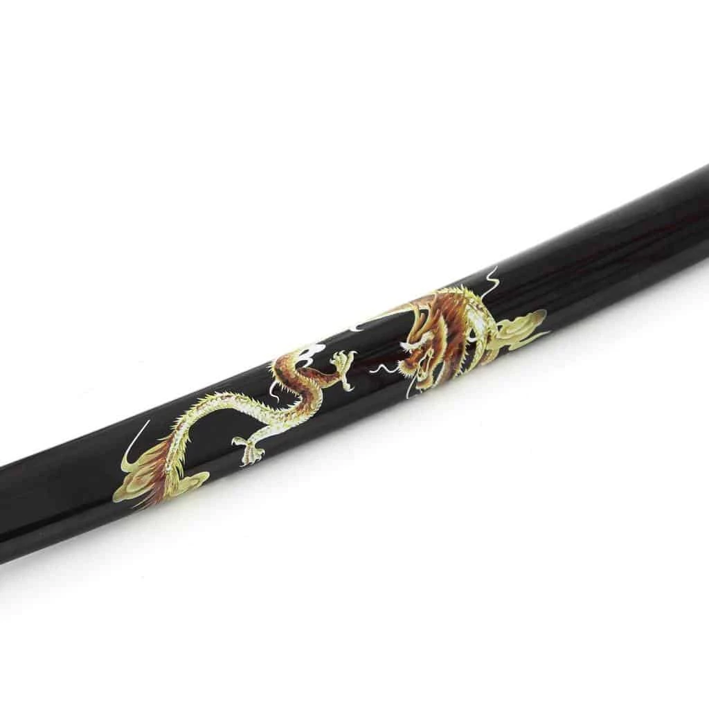 The Gold Dragon Katana features a hand painted design on the Saya.