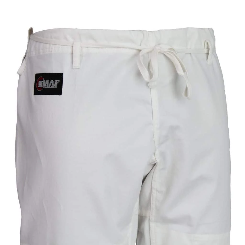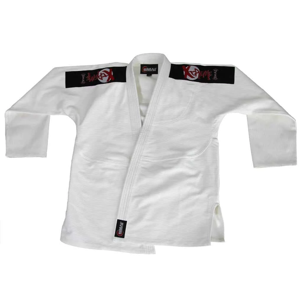 The SMAI MMA Xtreme White uniform is specially made for BJJ and MMA training. Constructed from 450gsm 100% cotton woven fabric, the Gi is incredibly durable. Manufactured in a way to minimse the amount of stitching required, this limits weak points in the main stress areas.
