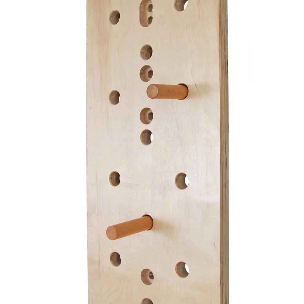 The SMAI Peg Board – Shorty is manufactured from high quality marine ply, this wood has a high stress rating which provides excellent strength under use. The Shorty peg board can be mounted in either the landscape or vertical orientation depending on your space. The board comes with 14 individual mounting hole options to ensure stability and comes with 6 dyna bolts.