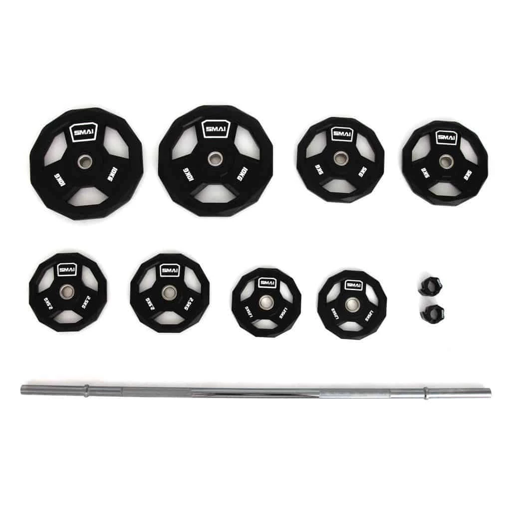 - 10 x pairs of 2.5kg plates (220mm diameter x 25mm width)