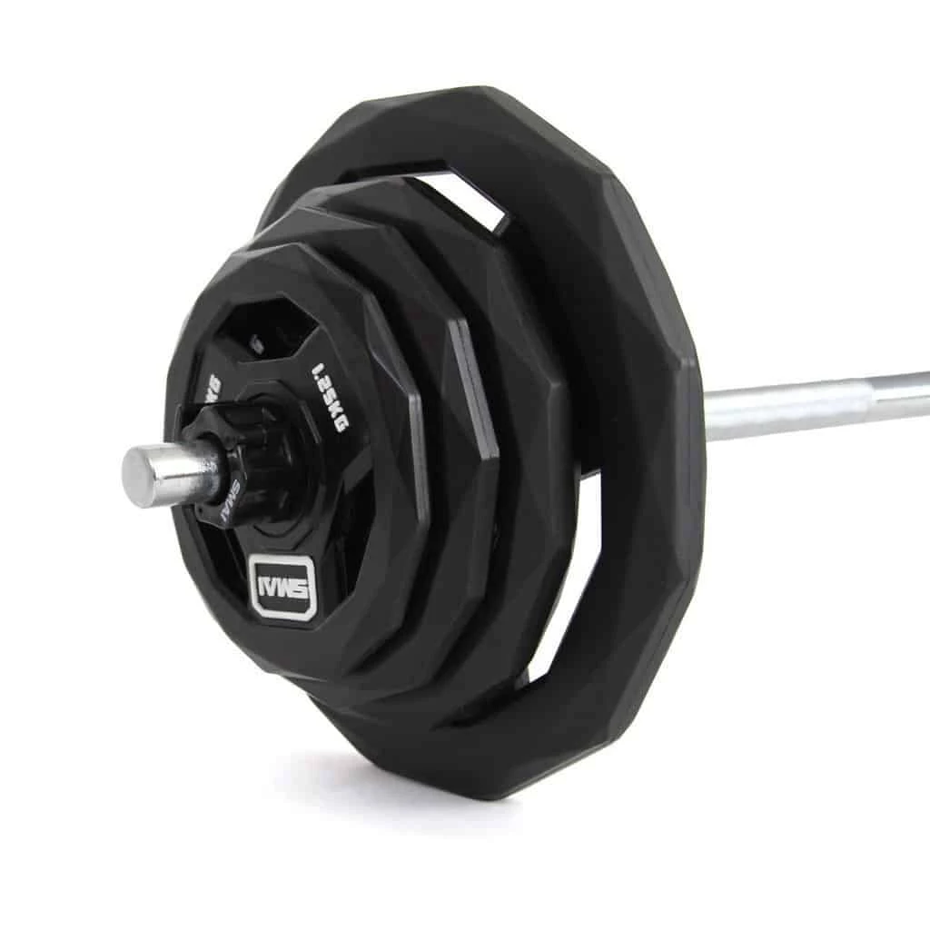 Pump set also includes Solid bars for higher maximum loading allowance great for all types of Personal training applications where space is limited as an alternative to Olympic bars. The weights are easily changeable with tri grip feature on all plates making them easy to grip and pick up giving them a dual purpose for other applications as free weights. Weights are fixed on the bar using quick lock collars