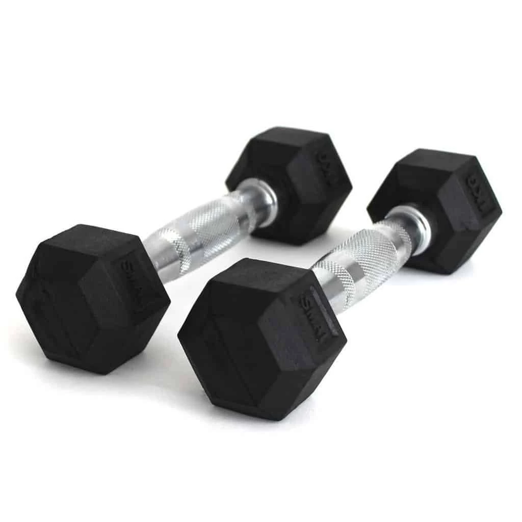 SMAI Rubber Hex Dumbbell Sets are made from top quality materials to withstand the daily pounding they receive during your fitness workout. Sold in pairs, the dumbbell features a chrome grip and heavy-duty rubber fixed head. This rubber coating reduces wear and tear to your space plus minimizes noise when you smash out dumbell exercises. The dumbells also feature hexagonal ends to ensure they don’t roll away.
