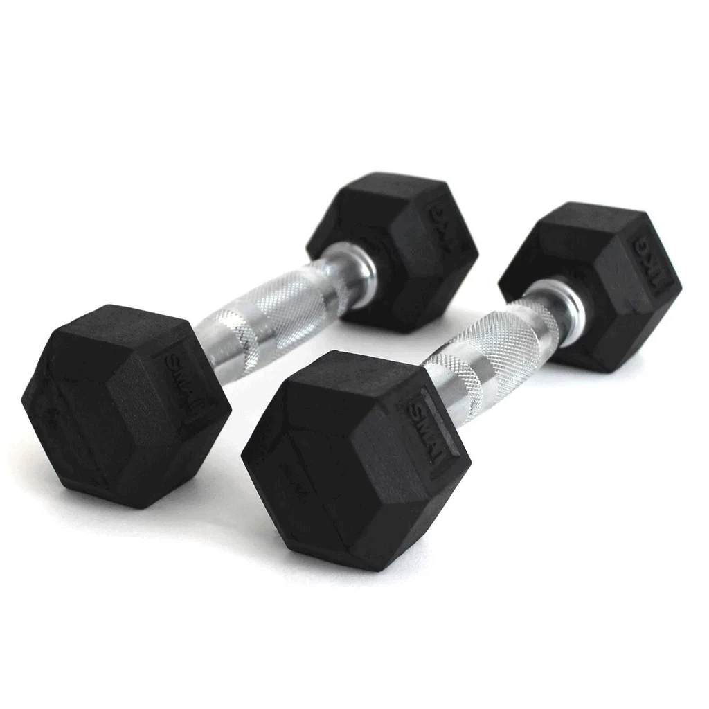 SMAI Rubber Hex Dumbbell Sets are made from top quality materials to withstand the daily pounding they receive during your fitness workout. Sold in pairs, the dumbbell features a chrome grip and heavy-duty rubber fixed head. This rubber coating reduces wear and tear to your space plus minimizes noise when you smash out dumbell exercises. The dumbells also feature hexagonal ends to ensure they don’t roll away.