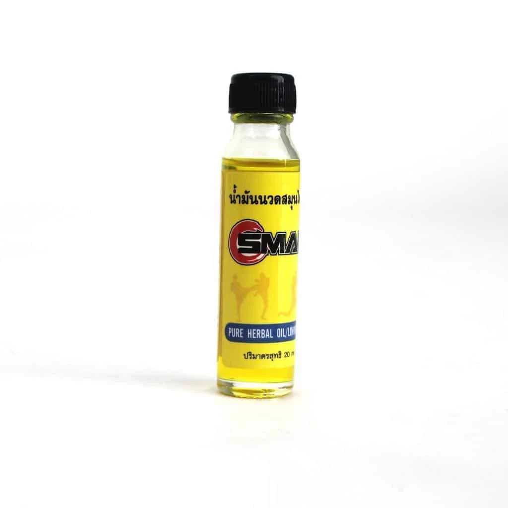 The healing and anti-inflammatory properties of this oil make it ideal for migrains, muscle pains, sprains, bruises and deep tissue massage. When inhaled, the linament helps relieve nasal congestion, dizziness and faintness. The Herbal Oil is very popular with Muay Thai practitioners and has a cult following. Made with 100% natural ingredients.
