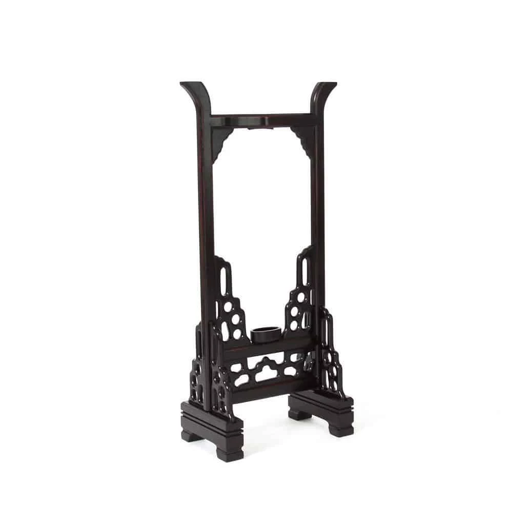 High quality single weapons stand (Vertical). Easy to assemble with a 3 piece construction that slots together. High level of detail in the work and also allows you to adjust the opening at the top to make the hole larger or smaller to accommodate different size weapons. Total assembled size: 36cm wide x 19cm depth x 73cm height