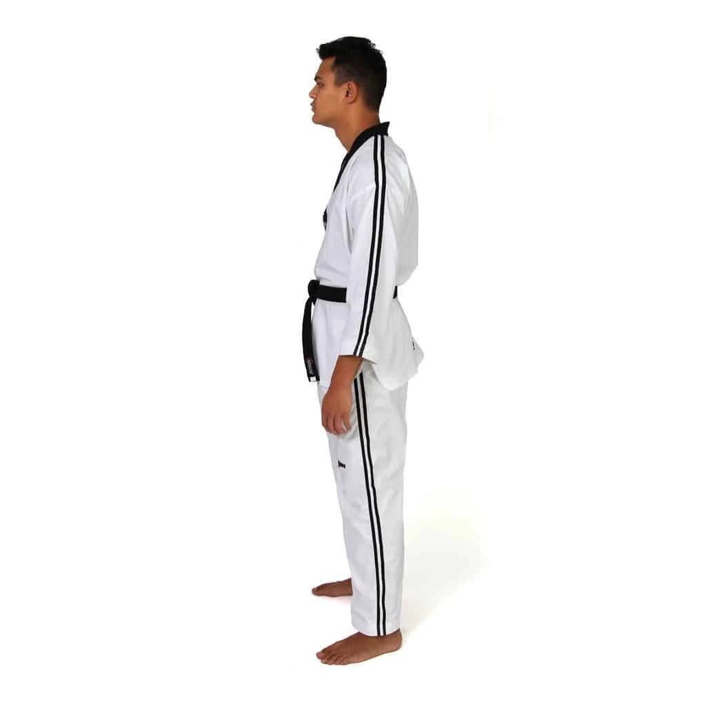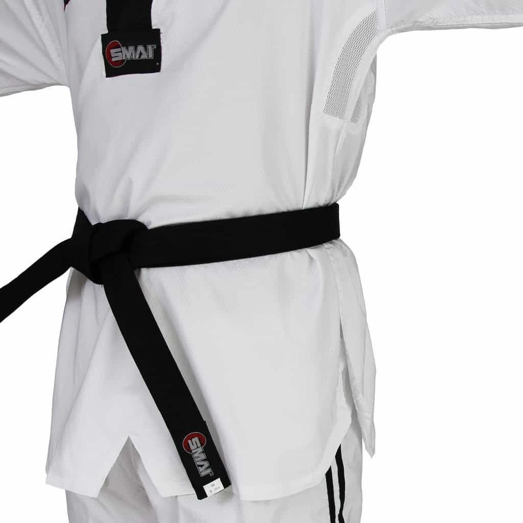 The Martial Arts Taekwondo Uniform Fight Pro has been specifically made for top level TKD athletes. Developed in a lightweight microfibre to ensure minimal resistance and drag the uniform features mesh inserts in key areas to make sure you stay cool. With the two-stripe design unique to SMAI it offers a point of difference.