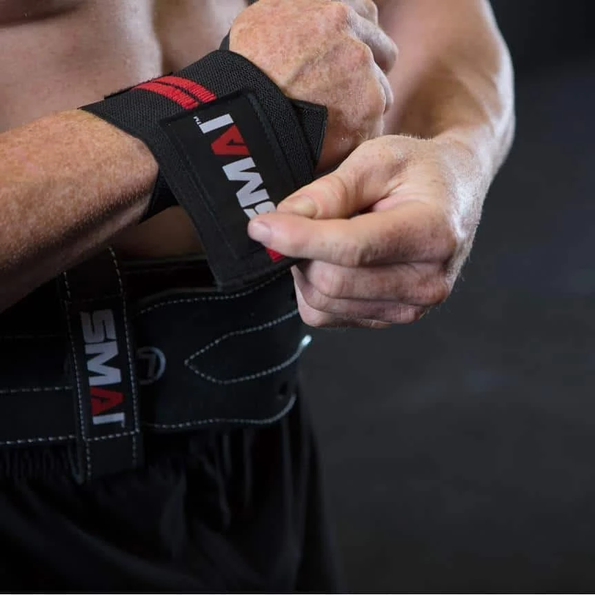 Wrist wraps are commonly worn by competitive powerlifters and bodybuilders due to the benefits they provide. With a new and improved design featuring wider Velcro for maximum support, the SMAI Wrist Wraps are made from high-quality woven, elasticised cotton. Featuring an elastic thumb closure for quick wrapping and being machine washable, these wrist wraps are the ideal addition to any workout. SMAI Wrist Wraps can be used to enable added support for all squat or Olympic lifting work.