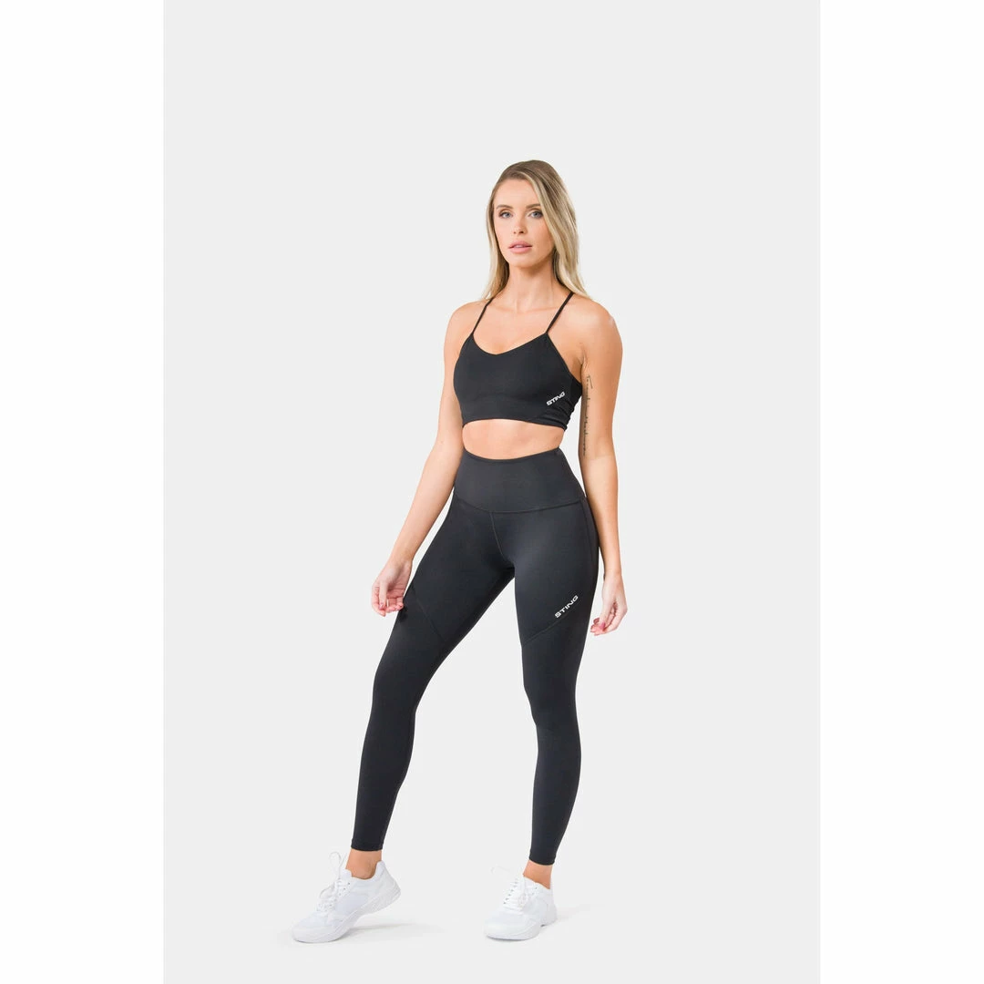 Model Size: Model is 5’.4” (approx. 163 cm) tall and is wearing size XS in leggings and size XS in sports bra